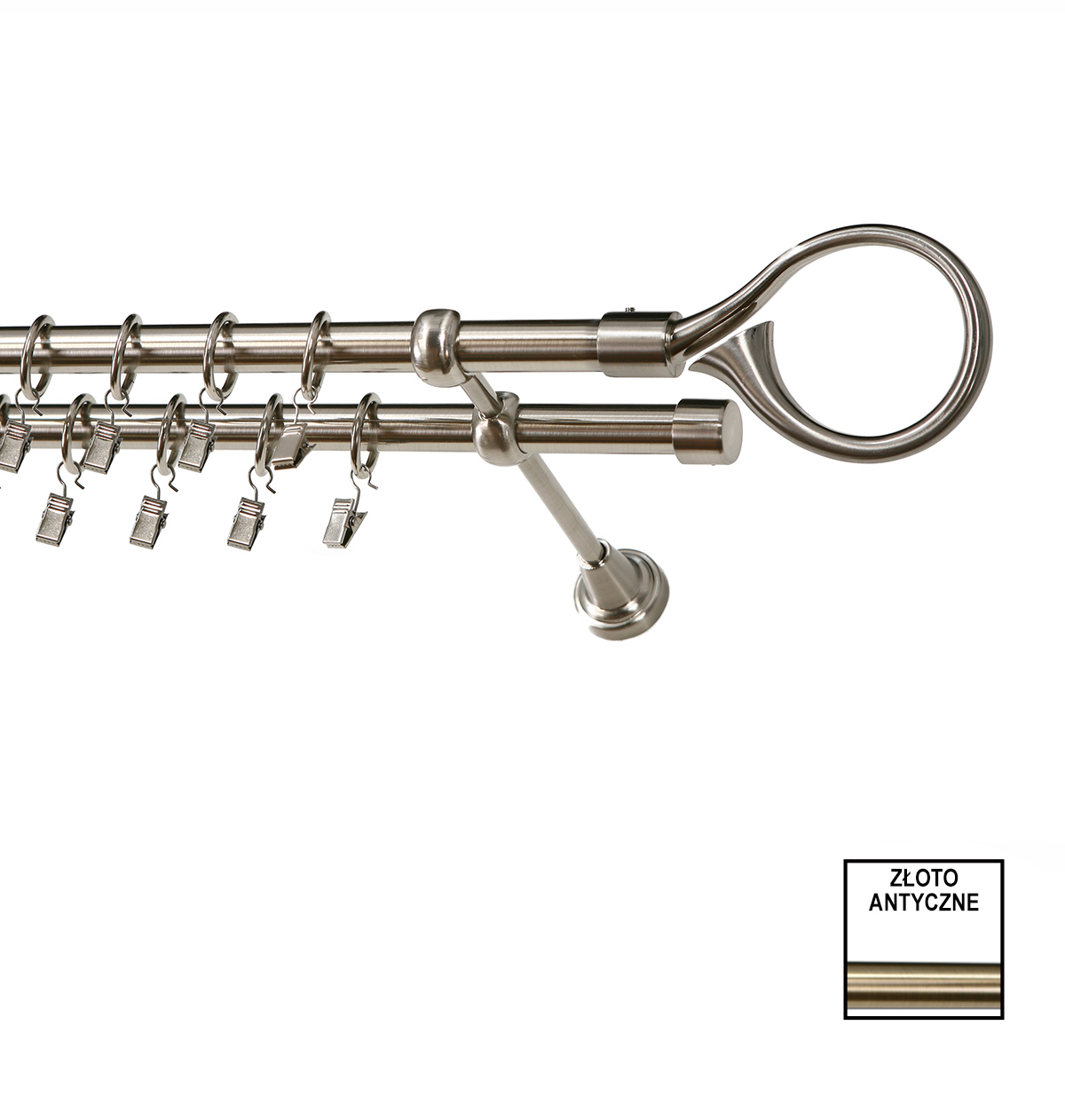Karnisz podwójny Zeus fi 19 mm - 240 cm hak złoto KARWEL