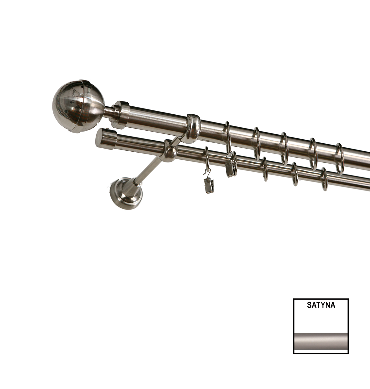 Karnisz podwójny Zeus fi 25 mm - 400 cm kula satyna KARWEL