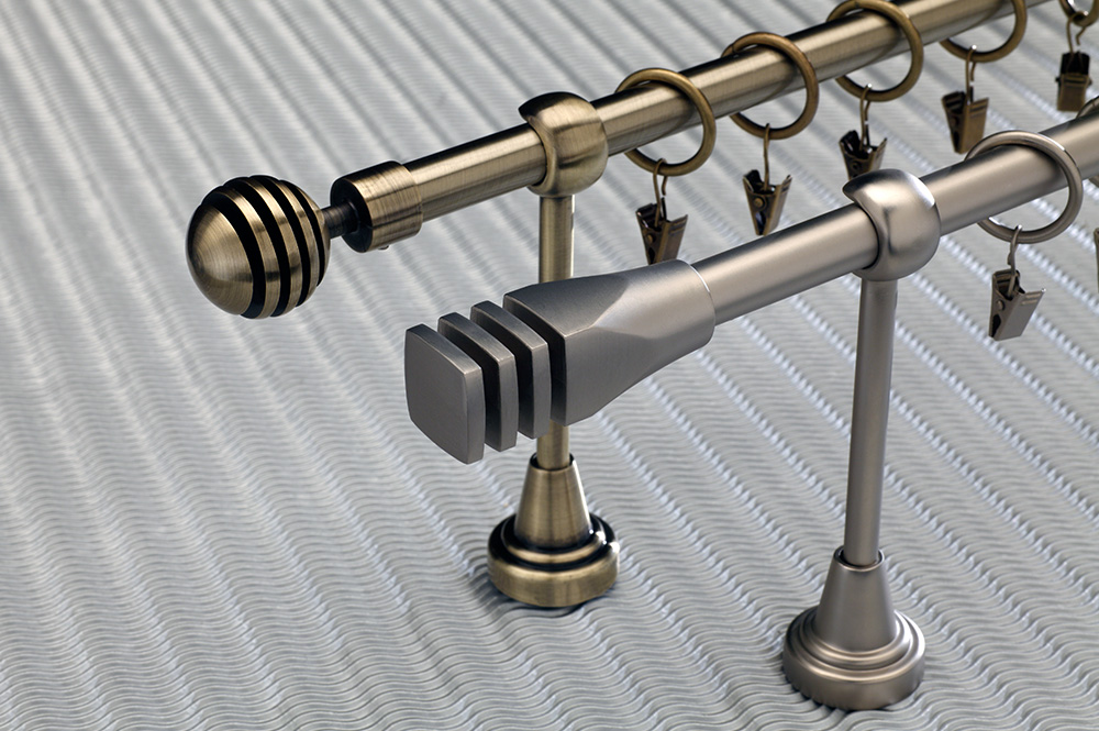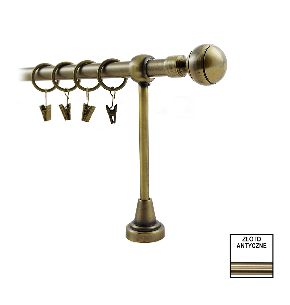 KARNISZ HEFAJSTOS PLUS FI16 POJ. 1,6 KULKA ZŁOTO (FOLIA) W skład karnisza metalowego „HEFAJSTOS plus” wchodzi : rurka metalowa fi 16 mm zakończenia metalowe wsporniki metalowe pojedyncze bądź podwójne ścienne kółka metalowe żabki metalowe zestaw montażowy (kołki + wkręty) instrukcja obsługi