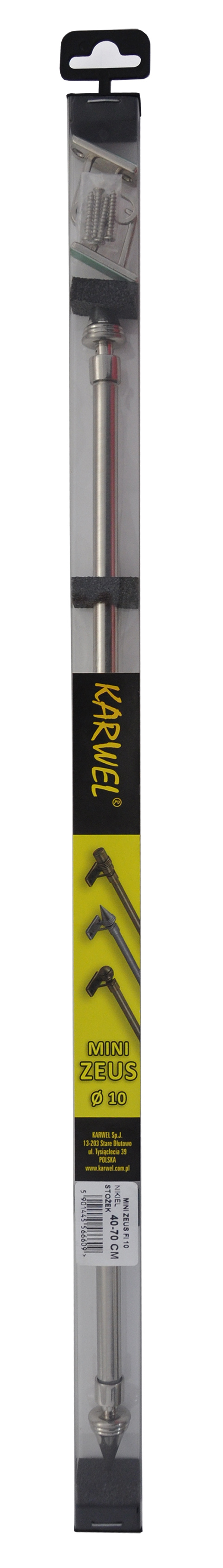 Przeznaczony do mniejszych okien karnisz pojedynczy Mini Zeus 10 mm 40 cm Kulka złoty KARWEL to doskonała propozycja dla okna w przedpokoju lub ganku. Zakończony lekko ozdobioną kulą ma kolor antycznego złota, które pięknie komponuje się z bielą firanek i naturalnymi kolorami ścian. Precyzyjnie wykonany jest mocowany na ścianie za pomocą metalowych wsporników, a najwyższa jakość zastosowanych materiałów gwarantuje długie lata użytkowania. Podstawowe parametry karnisza pojedynczego Mini Zeus 10 mm Kulka złoty KARWEL to głównie: