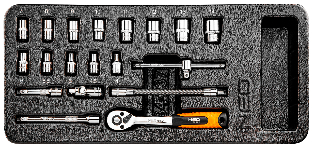 Klucze nasadowe 1/4", zestaw 19 sztuk, wkładka NEO
