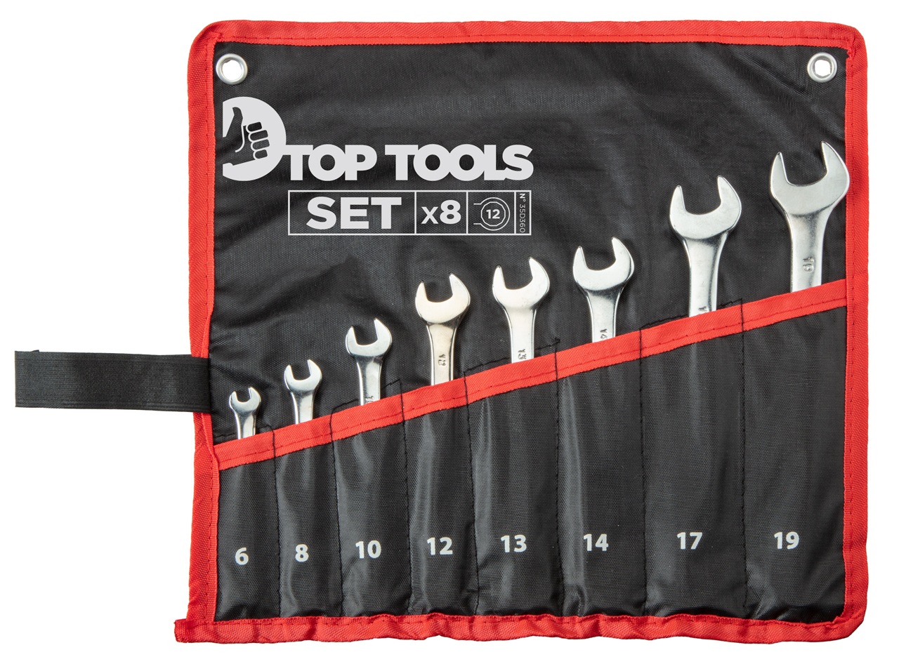 Klucze płasko-oczkowe 6-19 mm, zestaw 8 sztuk TOP TOOLS