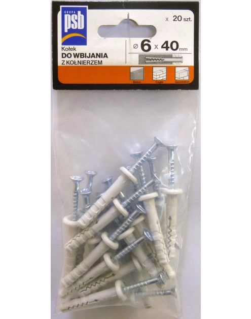 W opakowaniu marka Sila umieściła 20 sztuk kołków o wymiarach 6x40 mm. Kołki są proste w montażu. Wystarczy wbić gwoździowkręta w kołek za pomocą zwykłego młotka, a cała procedura zajmie bardzo mało czasu. Nie jest konieczne stosowanie żadnych elektronarzędzi.