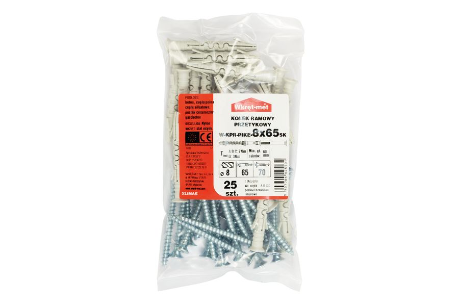 Kołki rozporowe ramowe krzyżowe 8x65 mm - 25 szt. marki WKRĘT-MET to popularne elementy łączeniowe, które wyróżniają się szerokim zakresem zastosowań. Wykonane z najwyższej jakości metalu są mocne i stabilne. Kołki rozporowe to akcesoria, których nie może zabraknąć w żadnej profesjonalnej firmie remontowo-budowanej ani w przydomowym warsztacie. Kołki rozporowe są powszechnie stosowane do mocowania wszelkiego rodzaju sprzętów, urządzeń, elementów wyposażenia wnętrz czy instalacji. Z ich pomocą powiesisz półkę, lustro czy obraz. Opakowanie zawiera 10 sztuk kołków rozporowych w opakowaniu z tworzywa sztucznego.