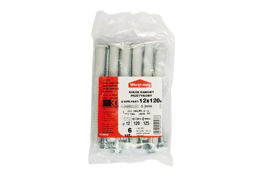 Kołki ramowe rozporowe z wkrętem z łbem sześciokątnym 12x120 6 sztuk WKRĘT-MET