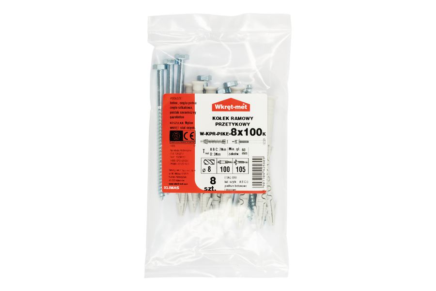 Kołki ramowe rozporowe z wkrętem z łbem sześciokątnym 8,0x100 8 sztuk WKRĘT-MET
