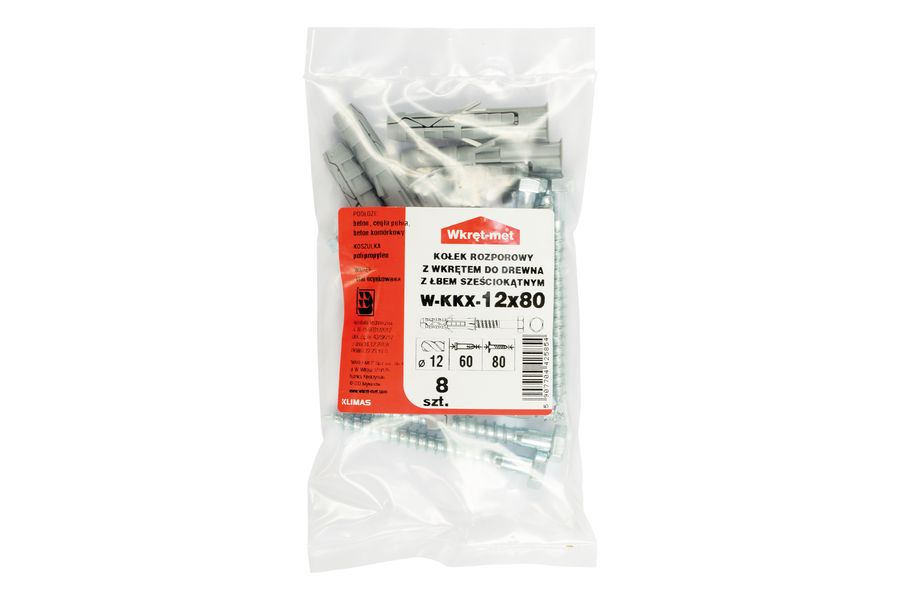 Kołki rozporowe 12x60 z wkrętem z łbem sześciokątnym 8x80 8 sztuk WKRĘT-MET