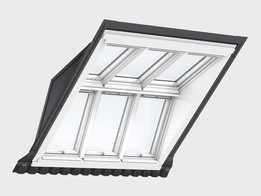 Zalej swój dom światłem i zapewnij niezrównane poczucie przestrzeni dzięki lukarnie VELUX. Konstrukcja lukarny unosi okna na 600 mm ponad połać dachu w celu zwiększenia ilości miejsca pod spodem, które można wykorzystać do postawienia mebli i umieszczenia dekoracji. Lukarna VELUX EBW 2022BK składa się z kombinacji 4 okien dachowych.