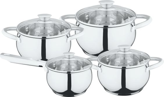 Komplet 4 garnków z pokrywkami z linii Dona składa się garnków o pojemności: 1,9l, 2,5l, 3,6l, 5,1l. Pokrywka ze szkła żaroodpornego, z otworem odprowadzającym wodę, garnki z uchwytem nienagrzewającym się, ergonomiczne , wielowarstwowe dno z wbudowanym dyskiem, dzięki któremu garnek szybko się nagrzewa i długo utrzymuje wysoką temperaturę.