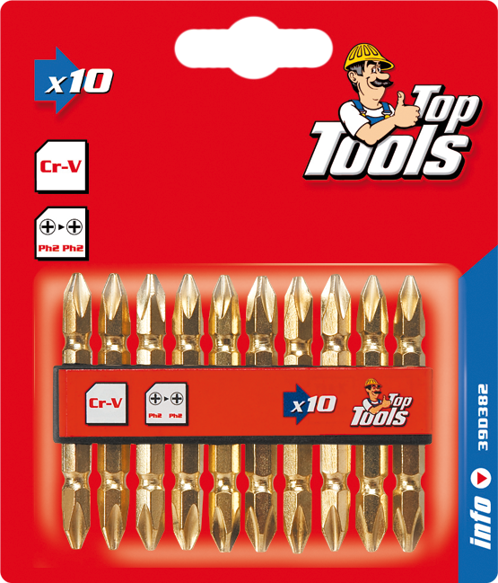 Końcówki wkrętakowe PH2 x 60 mm, 10 sztuk TOP TOOLS