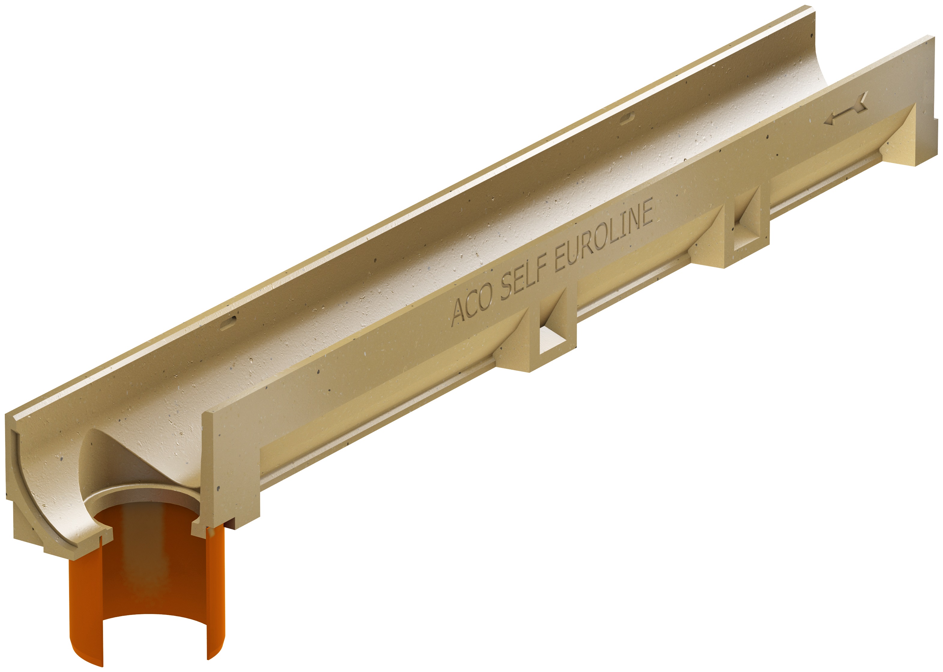 Korytko, odwodnienie bez rusztu z polimerobetonu 1m z króćcem fi 110 Self Euroline ACO