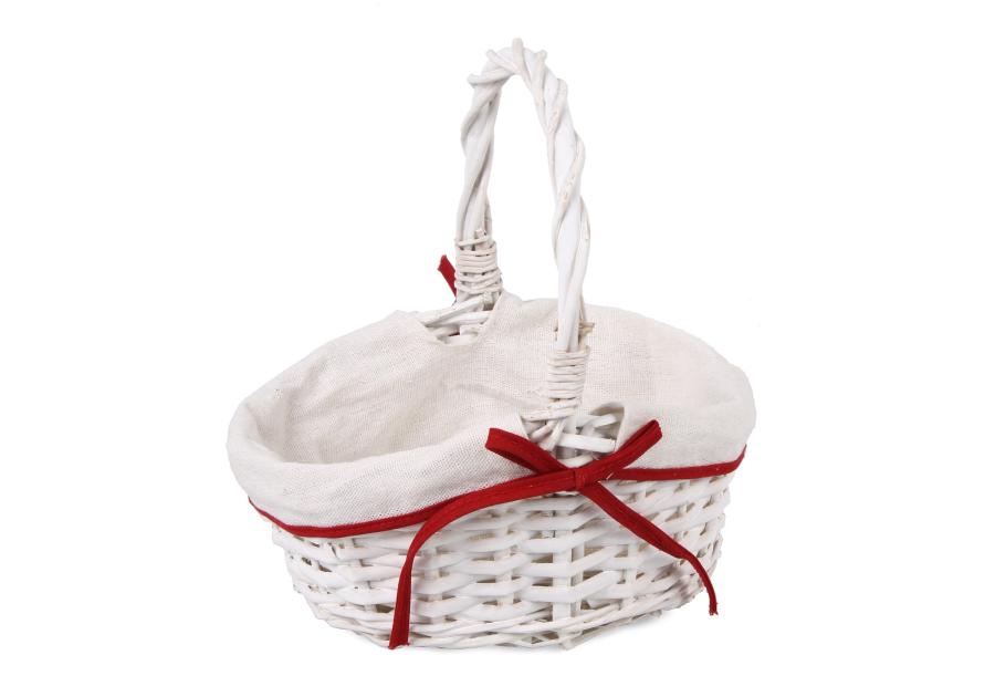 BIAŁY KOSZYK Z MATERIAŁEM OBSZYTYM KOLOROWĄ LAMÓWKĄ - mix kolorów Wymiary koszyka*: koszyk okrągły: średnica zewnętrzna: 20 cm wysokość kosza z uchwytem: 25 cm wysokość kosza bez uchwytu: 10 cm koszyk owalny z prostymi krawędziami: długość zewnętrzna: 18 cm szerokość zewnętrzna: 20 cm wysokość kosza z uchwytem: 23 cm wysokość kosza bez uchwytu: 10 cm koszyk owalny z krawędziami wygiętymi w dół: długość zewnętrzna: 23 cm szerokość zewnętrzna: 19 cm wysokość kosza z uchwytem: 25 cm wysokość kosza bez uchwytu w najwyższym punkcie: 11 cm wysokość kosza bez uchwytu w najniższym punkcie: 9 cm Cechy produktu: wykonany z naturalnego materiału: wikliny; rękodzieło; wiklina barwiona; kolor: odcienie bieli; w środku koszyka znajduje się materiał obszyty kolorową lamówką; wyszycie wyjmowane - łatwe w utrzymaniu w czystości; przeznaczenie: koszyk wielkanocny, koszyk do przechowywania, koszyk na owoce, dekoracja i wiele innych. KOSZYK JEST DOSTĘPNY W KILKU WERSJACH: koszyk okrągły z zieloną lamówką; koszyk okrągły z czerwoną lamówką; koszyk okrągły z żółtą lamówką; koszyk owalny z prostymi krawędziami z zieloną lamówką; koszyk owalny z prostymi krawędziami z czerwoną lamówką; koszyk owalny z prostymi krawędziami z żółtą lamówką; koszyk owalny z krawędziami wygiętymi w dół z zieloną lamówką; koszyk owalny z krawędziami wygiętymi w dół z czerwoną lamówką; koszyk owalny z krawędziami wygiętymi w dół z żółtą lamówką. * podane wymiary mogą się nieznacznie różnić od podanych ze względu na ręczne wykonanie z naturalnego materiału