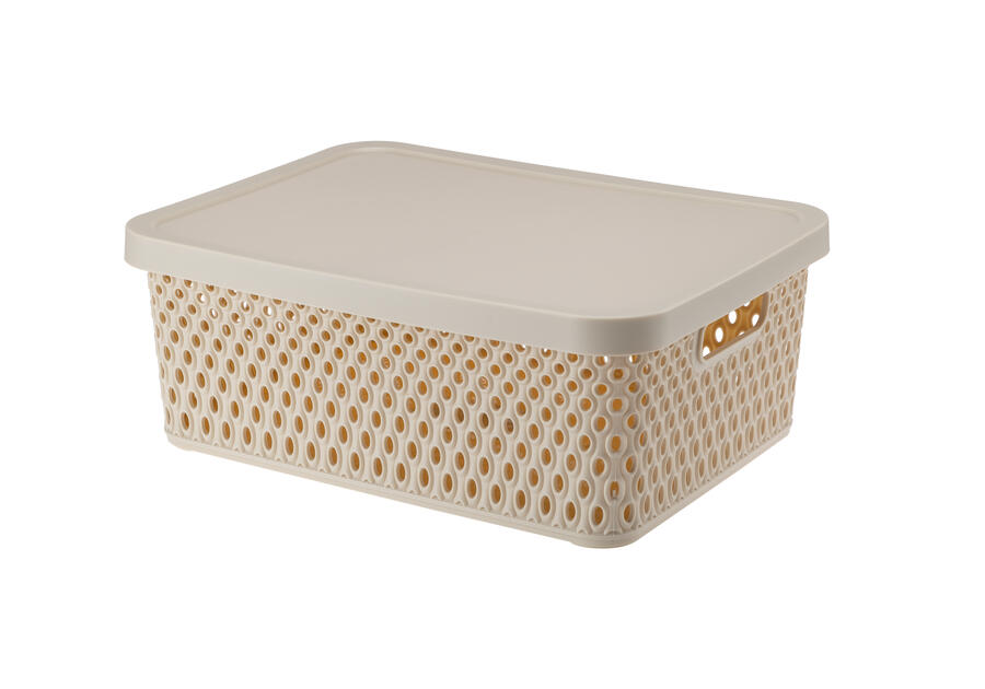 Beżowy koszyk z pokrywką oferowany przez markę Galicja ma pojemność 12 l. Ażurowa struktura zapewnia ozdobę w pomieszczeniu, co jest wartością dodaną. Przechowywanie jest z jego pomocą znacznie prostsze. Ponadto, produkt oszczędza bardzo dużo miejsca. Plastiki użytkowe w takim wydaniu są niezwykle praktyczne, warto je mieć w każdym domu. Wykonanie z tworzywa sztucznego powoduje, że z kosza można będzie korzystać przez bardzo długi czas. Jest lekki i pojemny. Pokrywa i uchwyty do przenoszenia ułatwiają nim zarządzanie.
