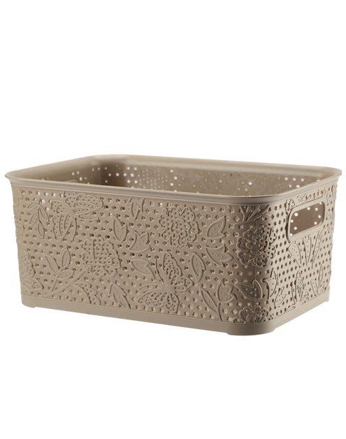 Funkcjonalny KOSZYK 5 L FANCY 8379 w kolorze beżu przyda się w każdej łazience czy garderobie. Wygodny kształt sprawia, że można w nim zmieścić dużą ilość bielizny lub innych drobnych ubrań, a elegancki ażurowy wzór doskonale odnajdzie się we wnętrzu o każdym stylu i charakterze. Wykonany z wysokiej jakości plastiku gwarantuje długą satysfakcję z użytkowania. Doskonale komponuje się z innymi modelami z serii Fancy. Najważniejsze parametry KOSZYKA 5 L FANCY 8379 beż to przede wszystkim: