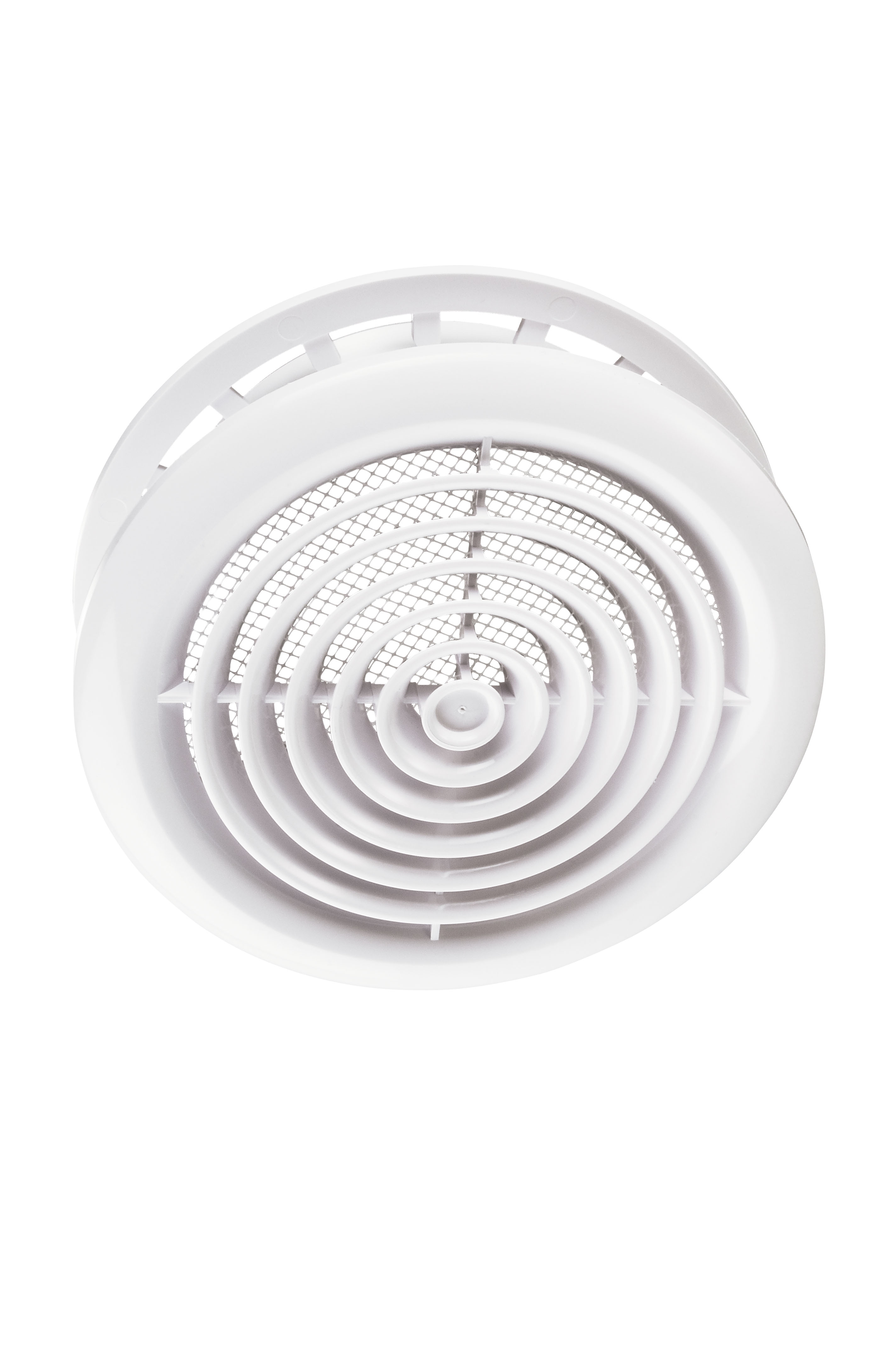 Dyfuzor suOtowy z siatką do wentylacj nawiewno-wywiewnej pomieszczeń. Przeznaczony do montażu suOtowego. Wbudowana siatka chroni przed dostawaniem się owadów i insektów do pomieszczenia.
