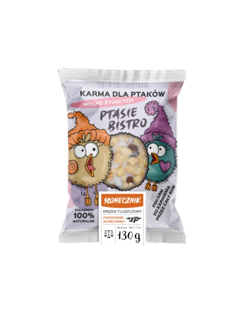Ptaki za słonecznikiem wręcz przepadają. To dla nich idealny pokarm na zimę. W tym przypadku wykorzystywany jest także łój wołowy i inne ziarna. To mieszanka dla dzikiego ptactwa idealna.