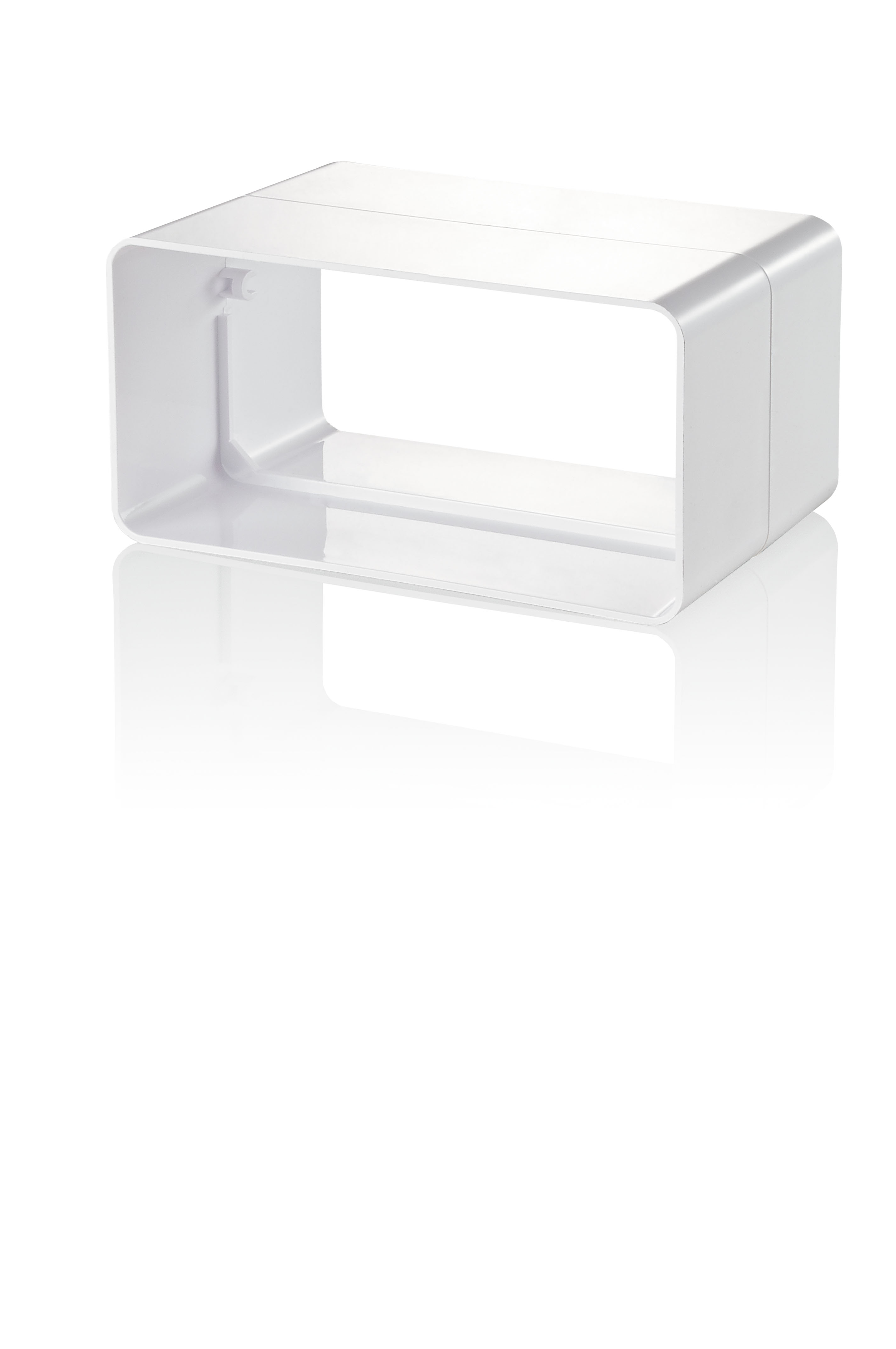 Łącznik płaskich kanałów wentylacyjnych o wymiarach 120x60mm. Łącznik typu mufowego (kanał wchodzi do środka). Łatwy montaż bez specjalistycznych narzędzi "na wcisk", nie wymaga spoiwa np. w postaci kleju, lekka konstrukcja, estetyczny wygląd, zalecana temperatura użytkowania od - 20 do 50 st. C