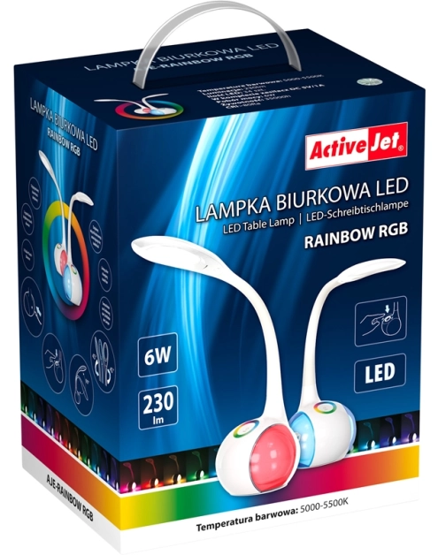 Lampka biurkowa LED Rainbow RGB Activejet to świetna propozycja zarówno do pokoju dziecięcego, jak i młodzieżowego. Sprawdzi się jako lampka biurowa i do nauki.