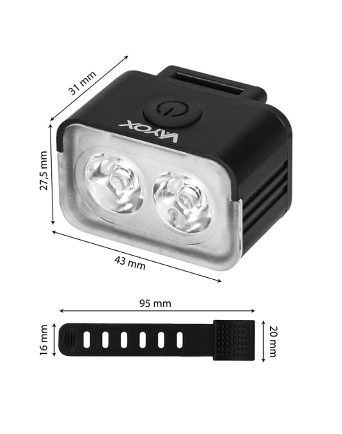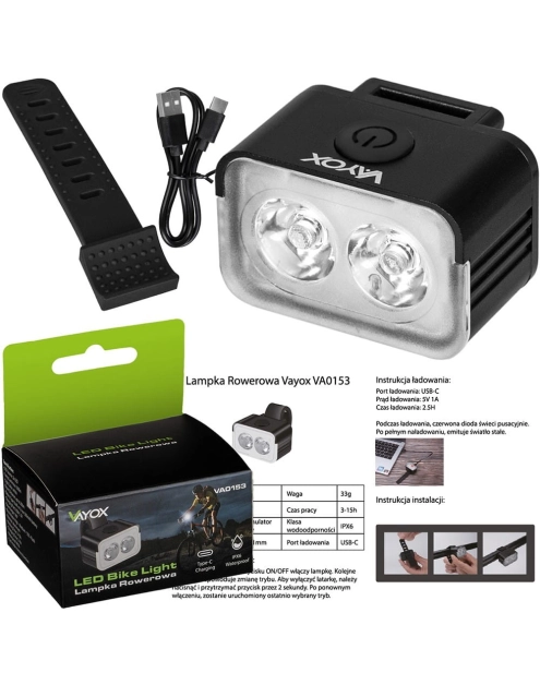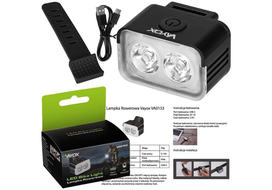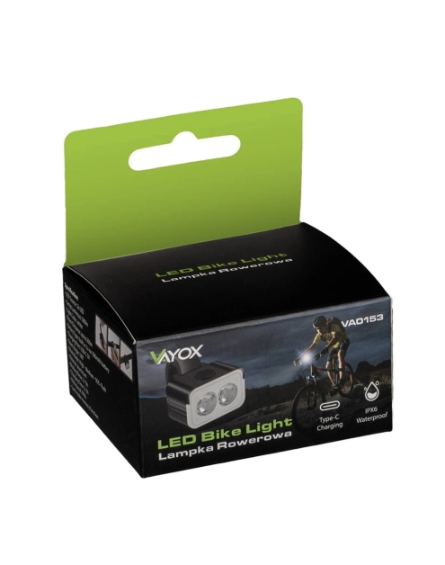 Lampka rowerowa przód 300lm 2xLED USB-C VA0153 VAYOX