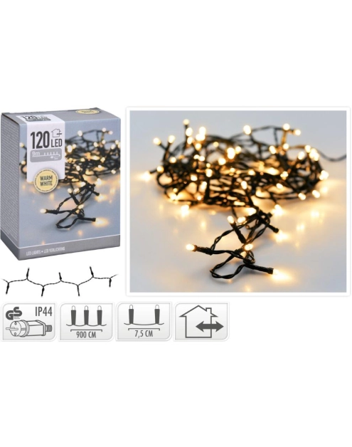 Łańcuch świetlny 9m ciepły biały 120 LED Koopman to elegancka dekoracja LED, która sprawdzi się w różnych przestrzeniach, zarówno wewnętrznych, jak i zewnętrznych. Produkt jest wyposażony w 120 energooszczędnych diod LED, które emitują przyjemne, ciepłe białe światło, tworząc nastrojową atmosferę, idealną do dekoracji wnętrz, ogrodów czy tarasów.