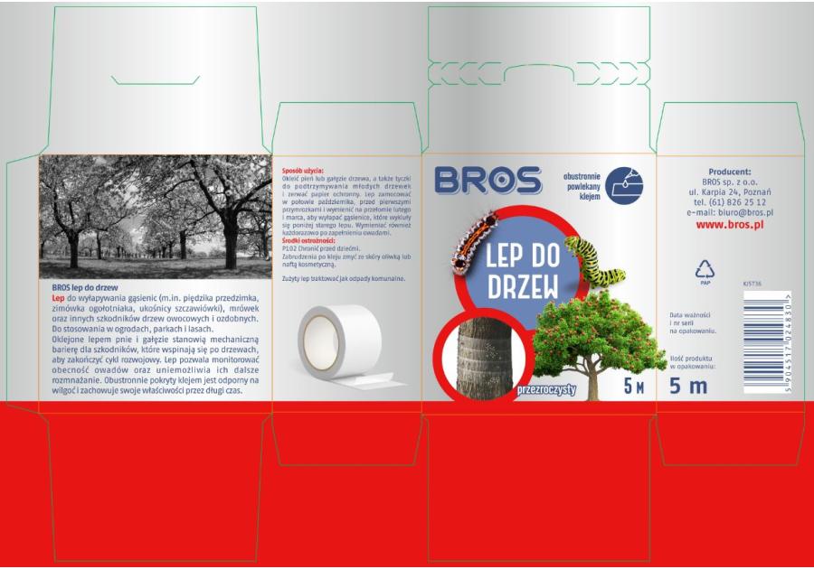 Lep do wyłapywania gąsienic (m.in. piędzika przedzimka, zimówka ogołotniaka, ukośnicy szczawiówki), mrówek oraz innych szkodników drzew owocowych i ozdobnych. Do stosowania w ogrodach, parkach i lasach. Oklejone lepem pnie i gałęzie stanowią mechaniczną barierę dla szkodników, które wspinają się po drzewach, aby zakończyć cykl rozwojowy. Lep pozwala monitorować obecność owadów oraz uniemożliwia ich dalsze rozmnażanie. Obustronnie pokryty klejem jest odporny na wilgoć i zachowuje swoje właściwości przez długi czas.