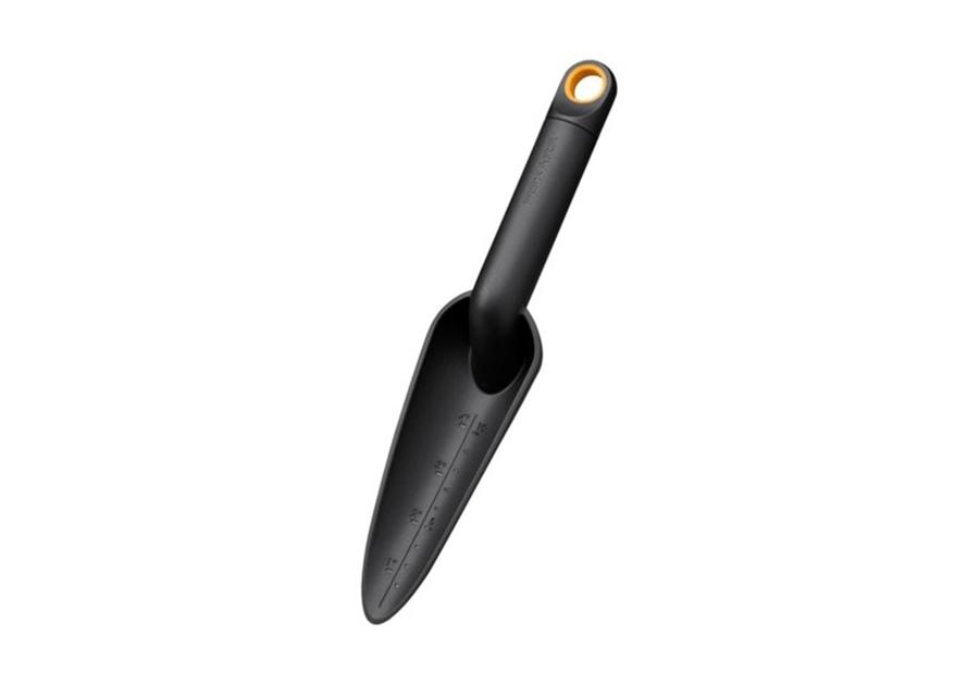 Łopatka ogrodowa wąska Solid marki FISKARS wykonana jest w 65% z tworzywa sztucznego pochodzącego z recyklingu z dodatkiem włókna szklanego, co zapewnia trwałość. Posiada wąską, ostro zakończoną wyprofilowaną głowicę, która idealnie sprawdzi się podczas sadzenia cebulek czy przesadzania małych roślin. Łopatka jest odporna na promieniowanie UV, dzięki czemu wytrzymuje działanie czynników atmosferycznych. Ergonomicznie zaprojektowany uchwyt zmniejsza zmęczenie dłoni, a wygodny otwór do zawieszenia ułatwia przechowywanie. Małe narzędzia ogrodowe są niezbędne zarówno pasjonatom ogrodnictwa, jak i profesjonalistom. FISKARS to gama funkcjonalnych narzędzi charakteryzujących się trwałością i wytrzymałością, uniwersalnym zastosowaniem oraz jakością.