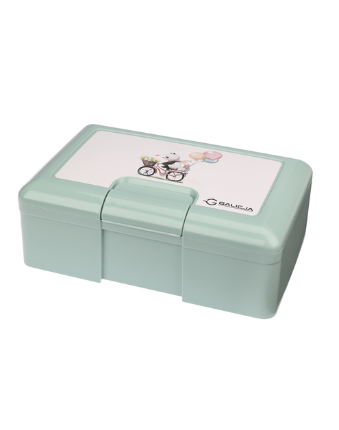 Lunchbox o wymiarach 19,5x12,5x7 cm marki GALICJA w kolorze miętowym to bardzo praktyczny pojemnik do przenoszenia kanapek. Idealny na drugie śniadanie dla dzieci do szkoły, ale również na wycieczki i wyjazdy za miasto. Dodatkowo posiada nadruk z motywem kredek. Szczelna pokrywa nie przepuszcza powietrza, dzięki czemu umieszczone w nich produkty dłużej pozostają świeże. Dzięki szczelnej pokrywce zapachy nie przedostają się do pojemnika oraz nie rozpraszają na inne produkty. Pojemnik zamykany na jeden klips mocujący, co pozwoli zachować świeżość przechowywanych produktów. Pojemnik na kanapki marki GALICJA jest łatwy w utrzymaniu czystości. Można myć go w zmywarce. Produkt łączy nowoczesny design z praktycznym zastosowaniem. Pojemnik nie zawiera szkodliwego dla zdrowia BPA (bisfenolu). Pojemnik śniadaniowy z efektownym motywem. Grafika na śniadaniówce pozwoli dzieciom w łatwy sposób odróżnić swój pojemnik. Pojemnik jest lekki, wykonany z materiałów bezpiecznych dla zdrowia i neutralnych dla żywności.