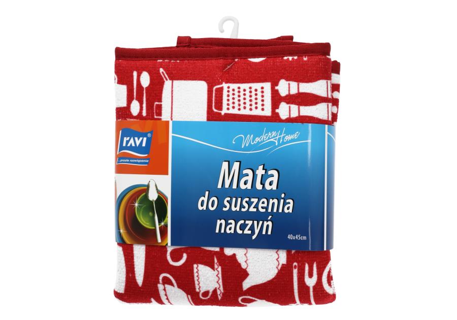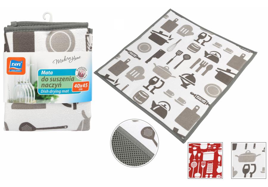 Wysoce chłonna mata do suszenia naczyń przyda się jako praktyczne uzupełnienie kuchennych akcesoriów. Produkt marki RAVI wykonano z miękkiej, wytrzymałej mikrofibry. Chłonny materiał przyspiesza proces osuszania talerzy i sztućców. Niewątpliwą zaletą jest dekoracyjny, czerwono-biały wzór w stylu kuchni retro.