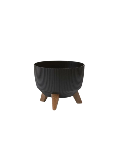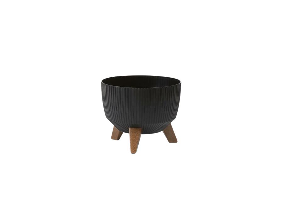 Misa z tworzywa sztucznego przyciąga uwagę ze względu na nóżki imitujące materiał drewniany oraz prążkowaną powierzchnię.