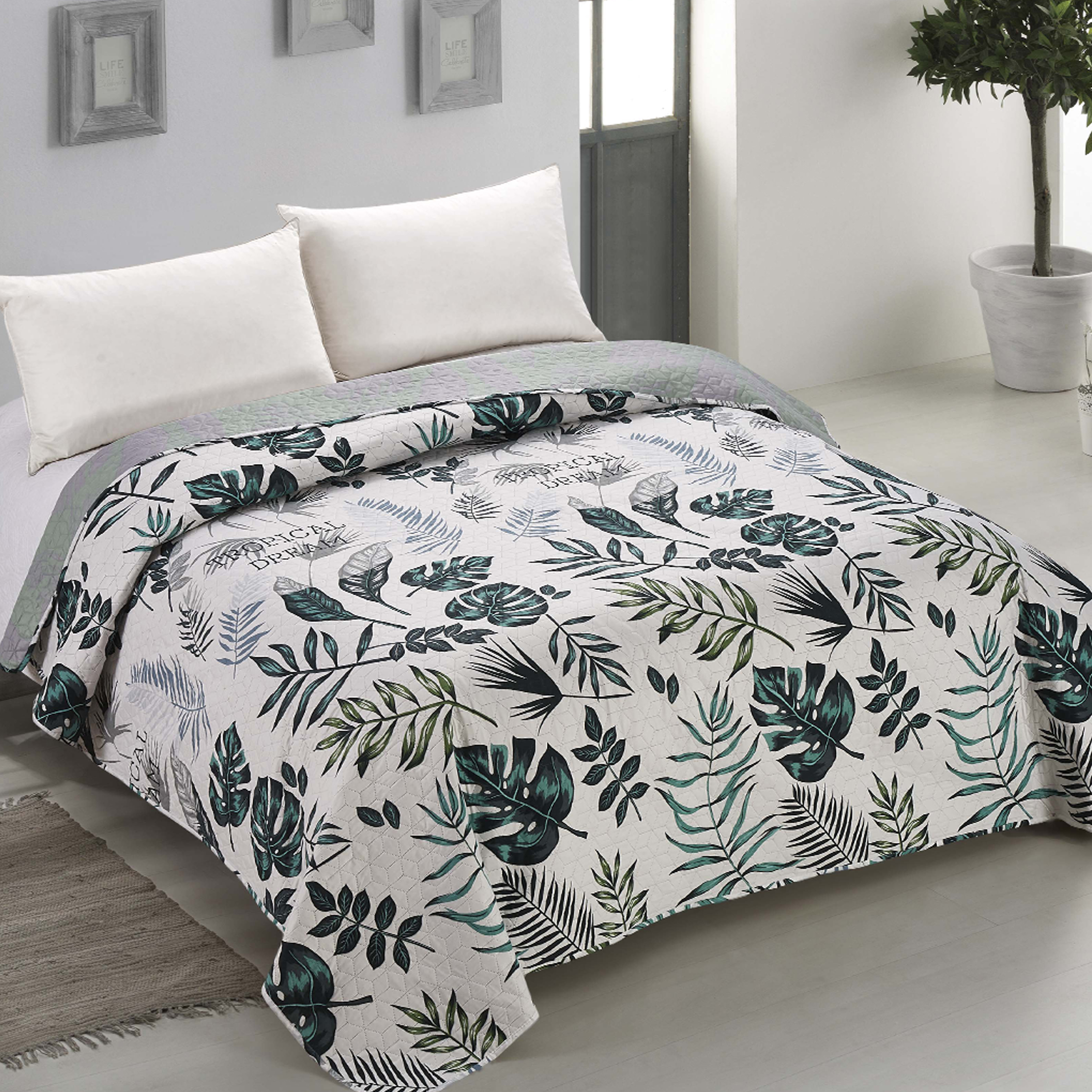 Motywy liściaste, na myśl przywołujące pay, tropikalny klimat cieszą się coraz to większą populaością. Najbardziej odważni przekształcają swoje domy i mieszkania w zieloną dżunglę. Ci, którzy nieco obawiają się tak zdecydowanej zmiany, sięgają po oryginalne dodatki. Przykładem jednego z takich dodatków, który natychmiast ożywi całe wnętrze jest narzuta Botanique. Roślinny motyw umieszczony na jasnej, kremowej tkaninie wybija się na pierwszy plan, przyciągając pełne zachwytu spojrzenia. Nakrycie dwustronne. Temperatura prania 30 stopni.