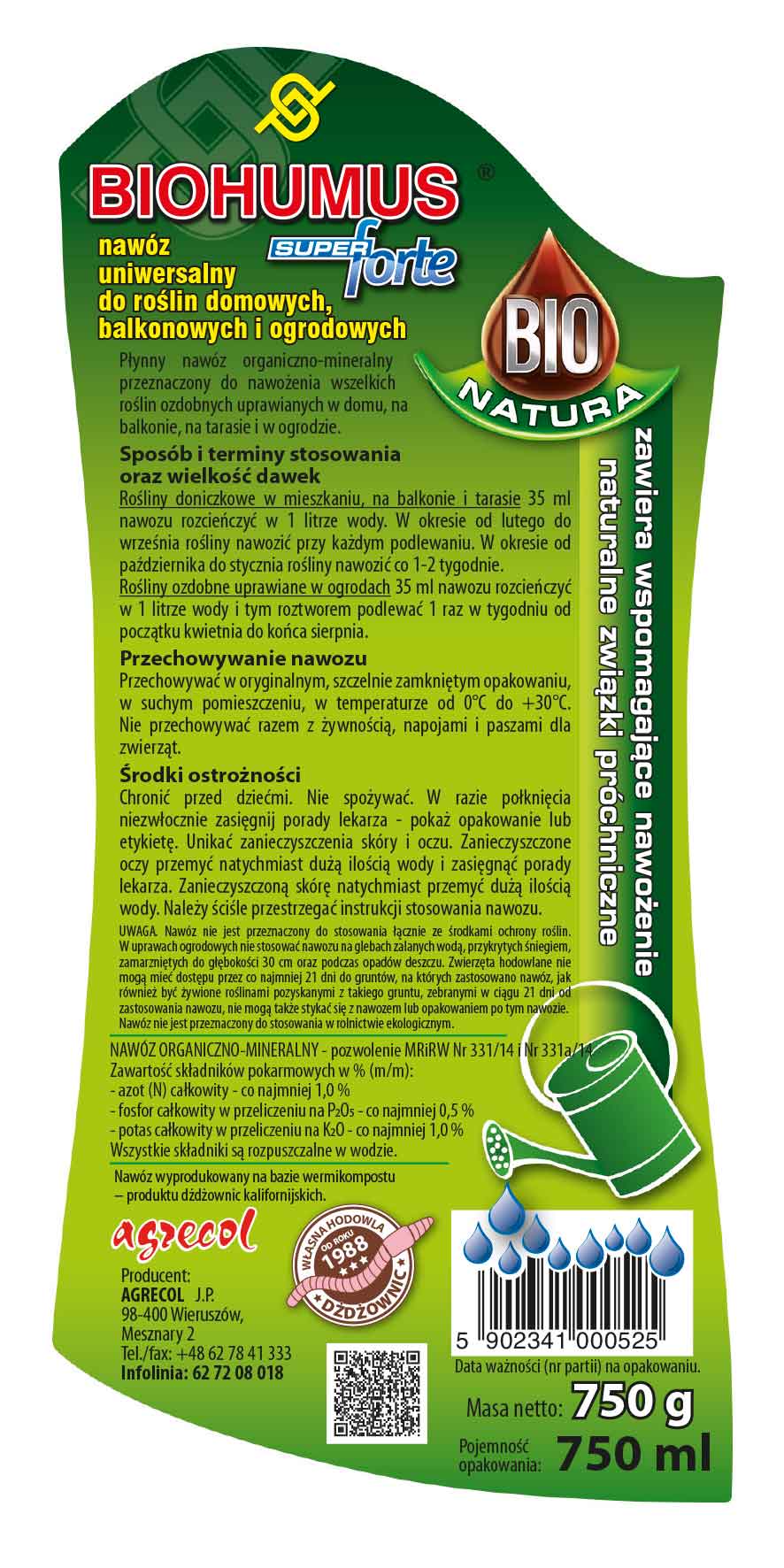 Nawóz unwersalny Biohumus Super Forte 0,75 L AGRECOL