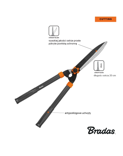 Nożyce V-Series-P do żywopłotu, ostrze proste BRADAS