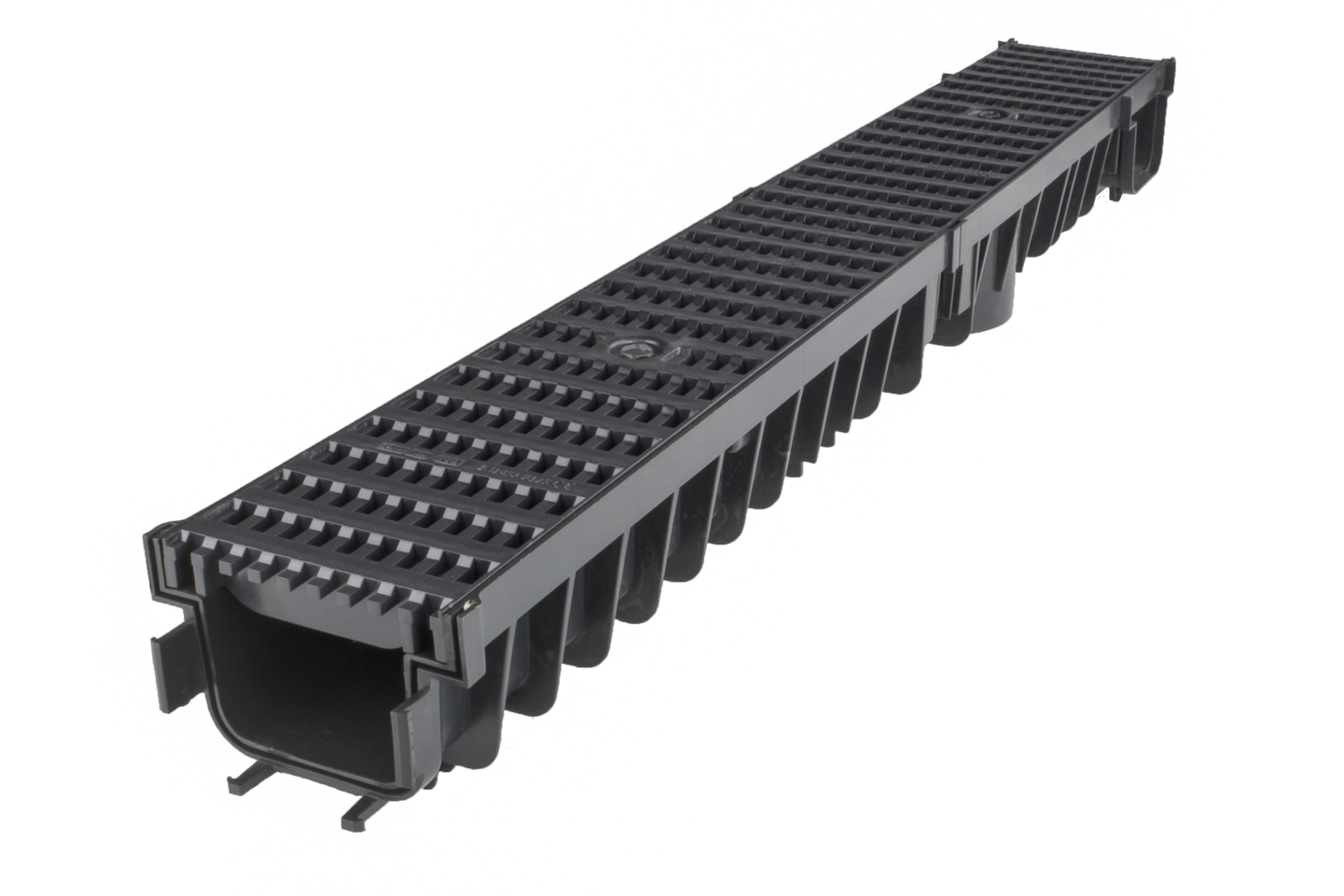 Kanał system 1000x100,odwodnienie liniowe, wykonany z polipropylenu, samoczyszczący dzięki gładkiej powierzchni. Klasa obciążeń B125 - parkingi, strefy ruchu pieszego, obciążenie statyczne 125 kN (12,5t)