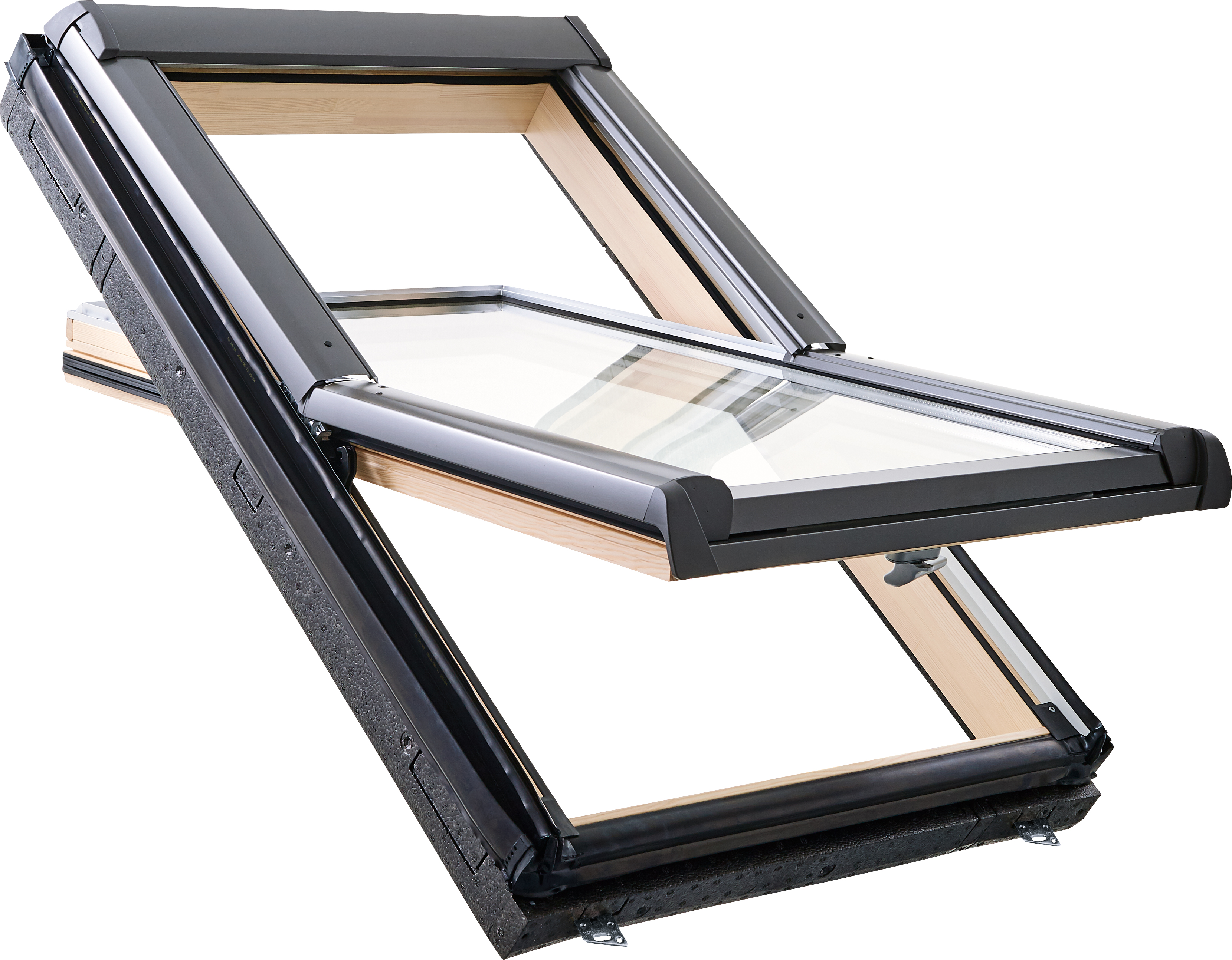 Okno obsługiwane jest za pomocą klamki umieszczonej u dołu. Designo R4 sprawdzi się jako okno spełniające podstawowe funkcje oraz oferujące najbardziej popularny sposób otwierania z osią obrotu w połowie wysokości okna. Wariant PVC może być z powodzeniem wykorzystany w pomieszczeniach o podwyższonej wilgotności. Okno charakteryzuje się nowoczesnym wzornictwem oblachowania zewnętrznego w wyjątkowej kolorystyce antracyt metallic. Dostepne w 17 standardowych rozmiarach. Cechy okna: + oś obrotu w 1/2 wysokości okna + harmonijna integracja okien z dachem, ergonomiczny kształt, brak widocznych wkrętów, nowoczesny kolor oblachowania – antracyt metallic + wygodne otwieranie klamką u dołu + okno wyposażone w Termo-blok WD docieplający ramę okna + 15 lat gwarancji oraz najwyższa jakość produktu, to bezawaryjne użytkowanie przez lata + do miejsc trudno dostępnych polecamy wersję RotoTronic, sterowaną za pomocą przełącznika, pilota lub innych elementów sterujących + system regulacji okna – niweluje skutki pracy więźby dachu + 3 punkty ryglowania okna – szczelność i podwyższona ochrona przed włamaniem