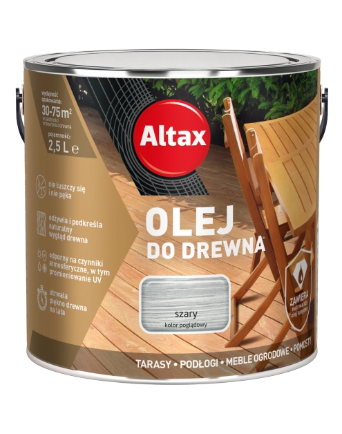 Olej do drewna marki ALTAX łączy w sobie funkcje pielęgnacyjne i dekoracyjne. Dzięki nowoczesnej formule zabezpiecza drewno przed czynnikami atmosferycznymi, nadmiernym