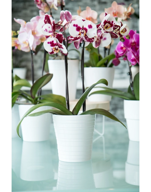 Storczyki potrzebują miejsca, w którym zostaną we właściwych warunkach zasadzone. Najczęściej wybierane są wysokie, a wąskie osłonki plastikowe. Znajdziesz je w ofercie marki Cermax. Osłonka z tworzywa sztucznego prezentuje się bardzo nowocześnie, a przy tym niezwykle atrakcyjnie. Idealnie wkomponuje się w aranżację niemal każdego wnętrza nowoczesnego, dzięki uniwersalnej kolorystyce. Stanowiła będzie ozdobę dla parapetu, tak samo jak sam storczyk.