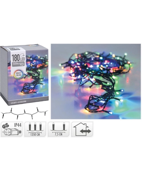 Oświetlenie LED 13,5m multikolor 180 LED Koopman to prawdziwa perełka, jeśli chodzi o dekoracje świetlne. Oświetlenie z 13,5 metra długości i 180 diodami LED, dostarcza intensywne, wielobarwne światło, które od razu przyciąga wzrok. Jest idealne do ogrodu, na taras czy do wnętrz, gdzie nadaje przestrzeni wyjątkowy charakter. Dzięki swojej długości i liczbie diod, oświetlenie tworzy efektowną iluminację, która zmienia każdą przestrzeń w magiczne miejsce.