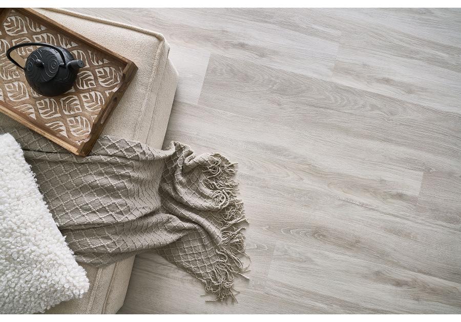 Nowoczesna elegancja w jasnym odcieniu drewna Panel winylowy Afirmax LEGNAR Dąb Freemont wyróżnia się chłodnym, jasnym odcieniem drewna, który nadaje wnętrzom przestronności i subtelnej elegancji. Delikatne usłojenie i naturalne przejścia tonalne podkreślają minimalistyczny charakter tej podłogi, doskonale wpisując się w nowoczesne i skandynawskie aranżacje. Dzięki wodoodpornej konstrukcji panele świetnie sprawdzają się w każdym pomieszczeniu, w tym w kuchniach i łazienkach. Stabilny rdzeń mineralny zapewnia trwałość i odporność na odkształcenia, a warstwa użytkowa 0,55 mm gwarantuje wysoką odporność na codzienne użytkowanie. Grubość 4 mm oraz kompatybilność z ogrzewaniem podłogowym sprawiają, że Dąb Freemont to doskonały wybór dla osób poszukujących podłogi o współczesnym wyglądzie i niezawodnej funkcjonalności. To harmonia stylu, trwałości i komfortu użytkowania.