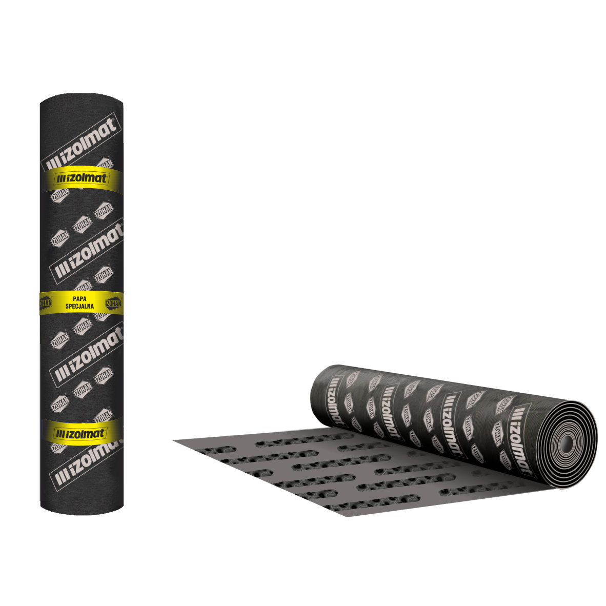 Papa Izolmat Termoklej przeznaczona jest do wykonywania warstwy paroizolacji oraz mocowania płyt termoizolacyjnych na dachach i tarasach. Posiada specjalne paski bitumu na stronie wierzchniej, umożliwiające mocowanie termoizolacji z płyt EPS i PIR.