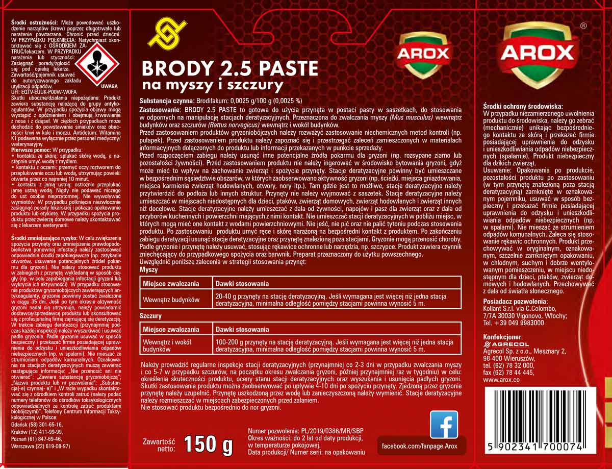 Trutka w postaci pasty w saszetkach przeznaczona do zwalczania szczurów (Rattus norvegicus, Rattus rattus) oraz myszy (Mus musculus).