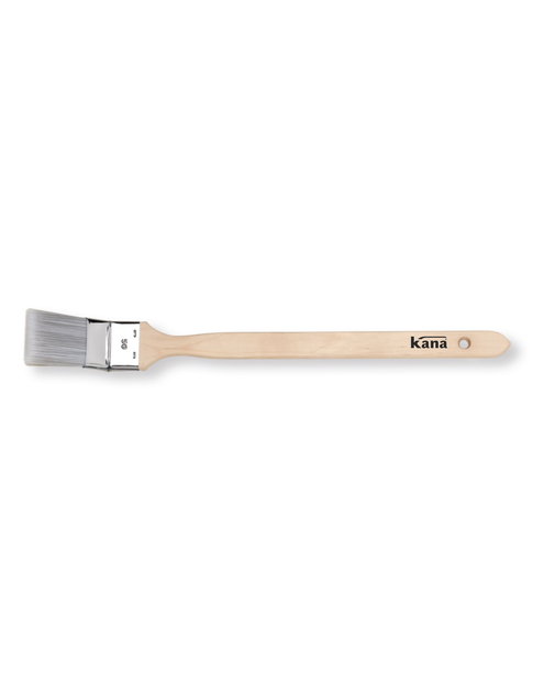 Pędzel kątowy KanaAqua z miksem szczeciny syntetycznej jakości Premium. Wysokiej jakości szczecina syntetyczna o stożkowatym kształcie, rozwarstwiona na końcu - zapewnia jednorodny transfer farby i bardzo dokładne wykończenie powierzchni. Nie pęcznieje w użyciu z farbami i lakierami na bazie wody. Długa żywotność, wysoka wytrzymałość. Łatwy w czyszczeniu