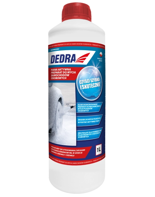 Pianka aktywna 1l do samochodów osobowych Dedra to specjalistyczny preparat przeznaczony do czyszczenia samochodów. Błyskawicznie rozpuszcza różnego rodzaju zabrudzenia i pozwala na wykonanie innych prac.