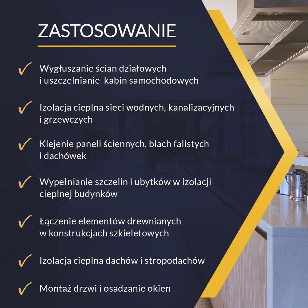 Potrzebujesz uniwersalnego produktu budowlanego? Planujesz remont czy budowę domu? Wybierz i wypróbuj niezastąpioną w budownictwie zimową pianę wężykową z serii SUPER PLUS. Piana świetnie sprawdza się przy wielu najpopularniejszych pracach - izolacjach, montażu, klejeniu a także wygłuszaniu. Piana budowlana charakteryzuje się podwyższoną przyczepność do większości materiałów budowlanych, takich jak: cegła, beton, tynk, drewno, szkło, metale, styropian, twarde PCV i sztywne piany PUR. Odporna jest na powstawanie pleśni i grzybów, a także efekty starzenia. Co więcej, może być stosowana w niskich temperaturach. Posiada również doskonałe właściwości izolacyjne oraz akustyczne. Piana montażowa służy do montażu drzwi i okien, a także izolacji cieplnej sieci wodnych, kanalizacyjnych i grzewczych. Ponadto ułatwia wygłuszanie ścian działowych i uszczelnianie kabin samochodowych. Można również stosować ją do przyklejania paneli ściennych, blach falistych i dachówek. SUPER PLUS Zimowa Piana Wężykowa pozwala też na właściwe wypełnianie ubytków w izolacji cieplnej budynków. Produkt gwarantuje dodatkowo odpowiednią izolacje cieplną dachów i stropodachów. Zalety: - dobra przyczepność do większości materiałów budowlanych - posiada odporność na niskie temperatury, a także pleśnie i grzyby - doskonałe właściwości izolacyjne i dźwiękochłonne - łatwe dozowanie i wygoda użytkowania - odporna na negatywne efekty starzenia - utwardza się pod wpływem wilgoci w powietrzu Zastosowanie - montaż drzwi i okien - wygłuszanie ścian działowych - uszczelnianie kabin samochodowych - izolacja cieplna sieci wodnych, kanalizacyjnych i grzewczych - klejenie paneli ściennych, blach falistych i dachówek - wypełnianie szczelin i ubytków w izolacji cieplnej budynków - łączenie elementów drewnianych w konstrukcjach szkieletowych - izolacja cieplna dachów oraz stropodachów