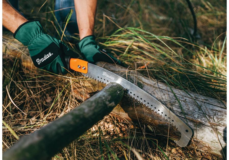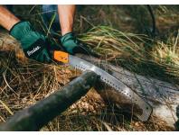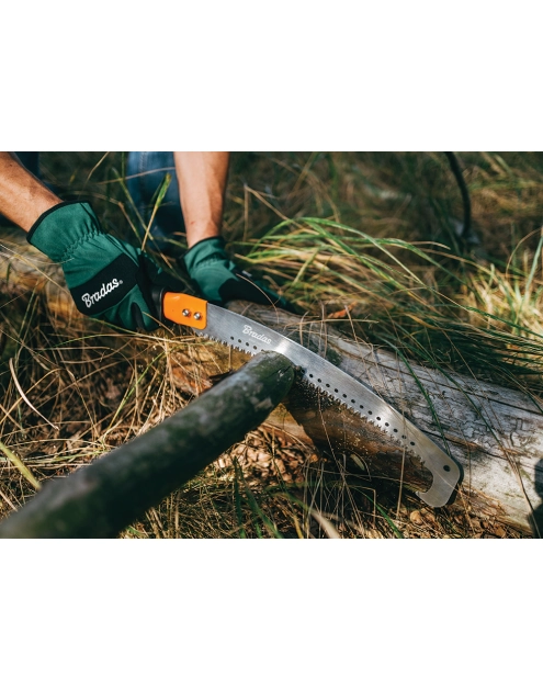 Wysokiej jakości ostrze wykonane ze stali hartowanej SK5, zęby wyprofilowane w dwóch płaszczyznach, ostrze zakończone w kształcie haka ,otwór w rączce pozwala na zamocowanie trzonka do prac na wysokościach,