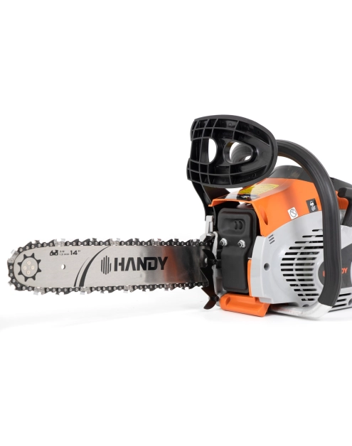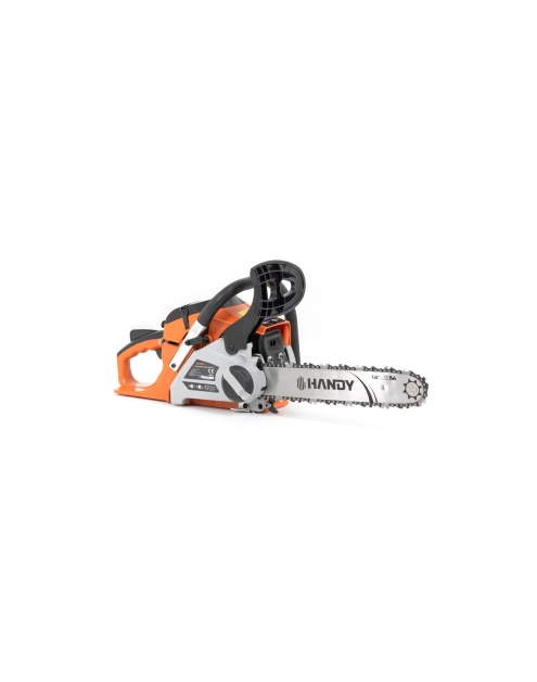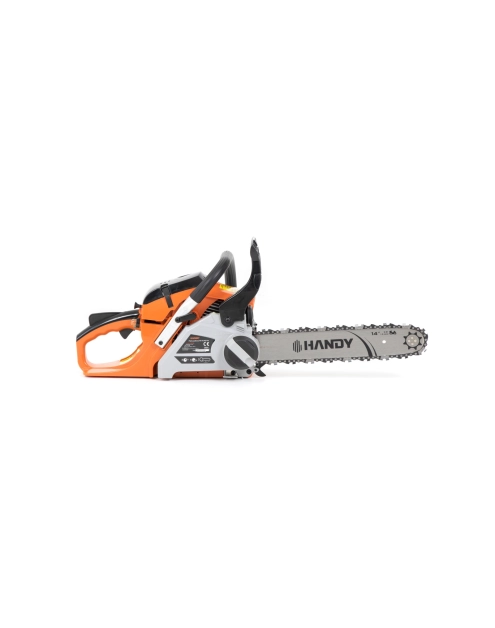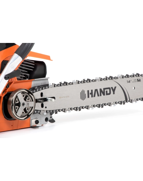 Pilarka spalinowa Handy RG 4114QT-A4 to model klasycznej, niewielkiej pilarki farmerskiej o zasilaniu spalinowym. Jest przeznaczona do wygodnej, autonomicznej pracy przy ścinaniu i obróbce drewna w warunkach przydomowych. Posiada wydajny, 2-suwowy silnik o pojemności 41 cm3 i mocy 1,9 KM. Komfort pracy zapewniony jest dzięki systemowi antywibracyjnemu oraz niewielkiej masie urządzenia, wynoszącej zaledwie 4,5 kg. Producent zastosował też udogodnienie, jakim jest wygodny, beznarzędziowy system szybkiego naciągu łańcucha (QT Quick-Tension). Pilarka spalinowa Handy RG 4114QT-A4 cechuje się ponadto metalowym osadzeniem uchwytu rozrusznika. Jest to sprzęt o charakterystyce odpowiadającej pracom przydomowym i ogrodowym, nieprzeznaczony do użytku komercyjnego na dużą skalę