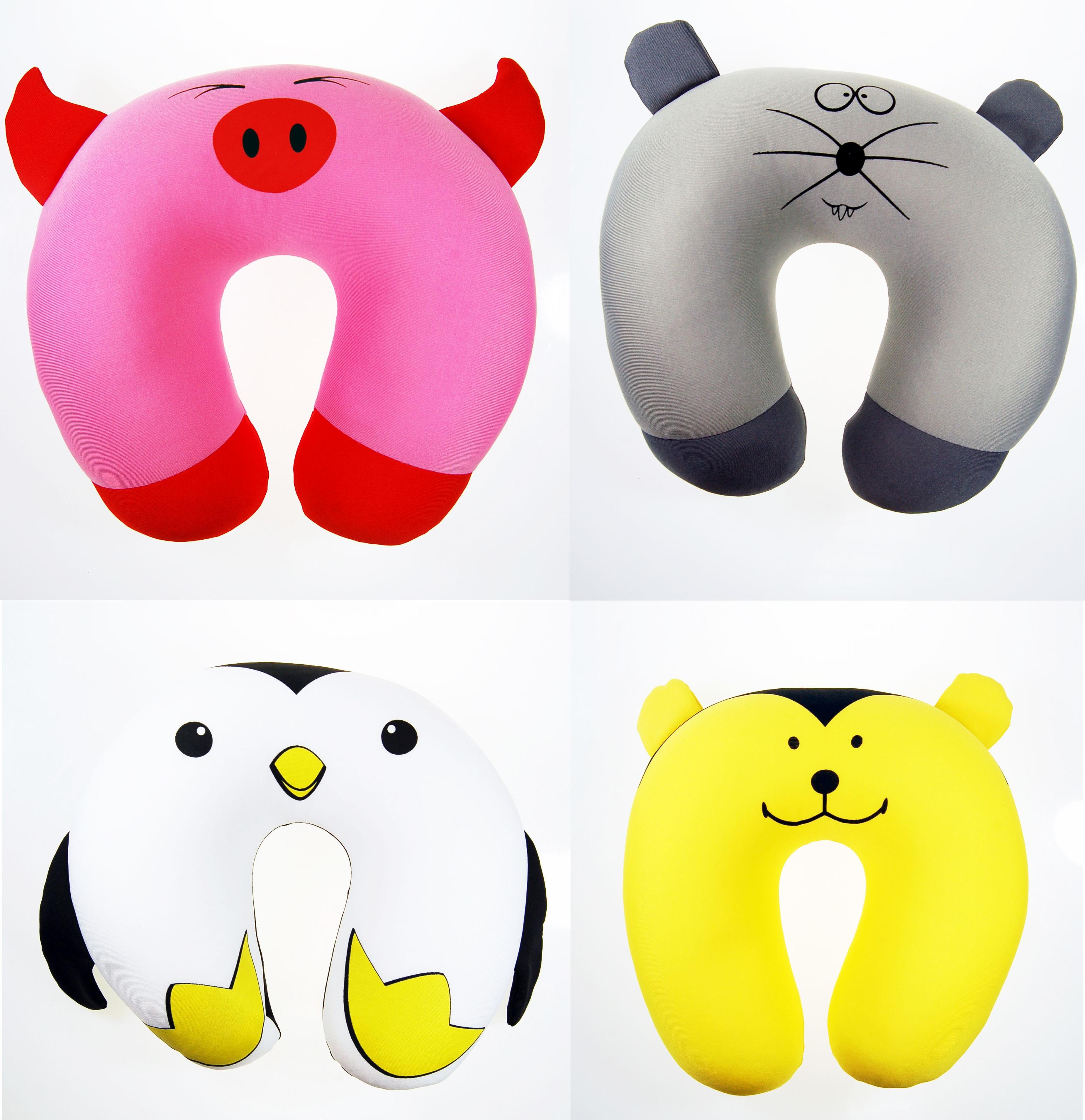 Planując podróż nie zapomnij o najmłodszych pasażerach. Aktualnie w ofercie posiadamy 4 poduszki w kształcie „rogala”, które zostały stworzone z myślą o najmłodszych. Dzięki nim masz pewność, że główka Twojego dziecka jest w odpowiedniej pozycji i nie obija się o boki fotelika samochodowego. 4 kolorowe oryginalne wzory „zwierzaków” z łatwością przyciągną uwagę dziecka oraz umilą mu podróż.