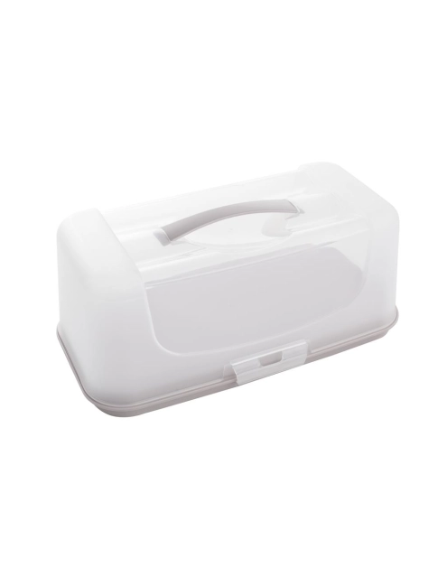 Pojemnik na ciasto prostokątny 18,9x34x14,3 jasnoszary PRAKTYCZNA to idealne rozwiązanie do przechowywania tortów i ciast. Jest on wyjątkowo pojemny i praktyczny. Dzięki mocnemu uchwytowi możesz wygodnie przenieść pojemnik wraz z zawartością. pojemnik wykonano z wyjątkowo mocnych materiałów wysokiej jakości. Pojemnik służy do przechowywania ciast oraz różnego rodzaju wypieków. Dzięki zamykanej konstrukcji, smakołyki nie pochłaniają zapachów z lodówki i zachowują świeżość na dłużej. Mocny uchwyt sprawia, że pojemnik jest łatwy do przenoszenia. Transparentne tworzywo pozwala na skontrolowanie zawartości bez konieczności otwierania go. Pojemnik to idealne rozwiązanie, jeśli potrzebujesz przetransportować jakiś wypiek na spotkanie lub imprezę rodzinną.