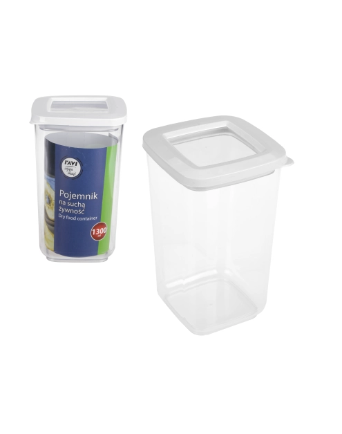 Pojemnik na suchą żywność 1300 ml RAVI to niezastąpione wyposażenie każdej kuchni. Umożliwia przechowywanie i zachowanie świeżości sypkich produktów takich jak mąka czy cukier. Zaopatrzony w szczelne wieczkospacjasłoik plastikowy z nakrętką, gwarantuje świeżość i długotrwałe przechowywanie. Tworzywo PET, z którego wykonany jest słoik charakteryzuje się krystaliczną przezroczystością doskonale eksponując zawartość słoika.spacjaSłoiki plastikowe PET to produkty o bardzo szerokim zastosowaniu. Świetnie nadają się dospacjaprzechowywania produktów żywnościowychspacjatakich jak mąka, kasza, makarony, jak i również idealnie sprawdzą się przy wszelakichspacjaproduktach kosmetycznych. Słoikispacjaułatwią organizację kuchni, w łazience i innych pomieszczeniach domowych.