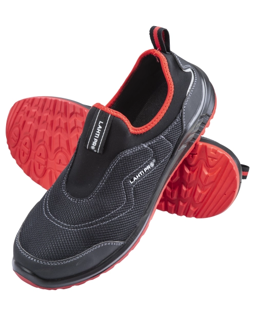 Półbuty bez sznurowadeł, dzianina 3D czarno-czerwony, s1p src,47,CE, LAHTI PRO