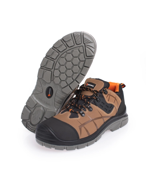 Półbuty ochronne MARRONE S3 SRC ze stalowym podnoskiem ochronnym odpornym na uderzenia z energią 200 J i zgniecenia 15kN oraz stalową wkładką antyprzebiciową chroniącą stopę przed przekłuciem o sile 1100N. Cholewka obuwia wykonana jest ze skóry nubukowej. Podeszwa antypoślizgowa z dwugęstościowego poliuretanu PU/PU, antyelektrostatyczna, olejoodporna. Klasa odporności na poślizg SRC. Absorpcja energii w części piętowej. Wyściółka z oddychającego materiału 3D Mesh. Nowoczesny design. Kategoria S3 SRC.